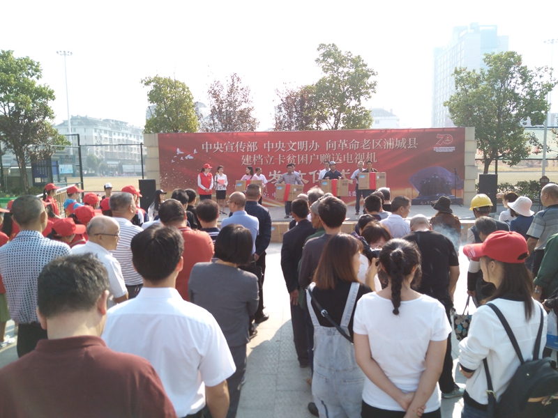 文明風9月27日訊(通訊員 黃娜)9月27日上午,中央宣傳部、中央文明辦向革命老區浦城縣建檔立卡貧困戶贈送電視機發放儀式在丹桂廣場隆重舉行。浦城縣委副書記劉建平,縣委常委、宣傳部部長吳曉琴出席活動。
