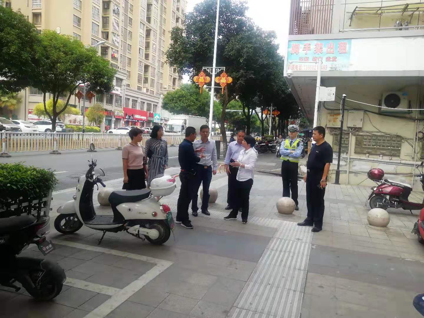 調研組一行先后走訪了解放大街、天行大街路口、牛角垅臨時便民攤點、體泉巷、梅花園農貿市場和晨光新明珠等地,實地察看了城區、小區管理等情況。對照省級文明縣城測評體系,逐一查找機動車、非機動車亂停放和盲道設置不合理、亂張貼亂涂寫現象與占道經營、臨時便民攤點管理混亂、公益廣告設置不足等交通秩序、市容市貌、創城氛圍方面存在的問題,并針對發現的問題,提出具體整改要求。