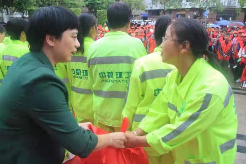 活動現(xiàn)場,紅色志愿者方陣與綠色環(huán)衛(wèi)工人方陣組成了廣場上一道亮麗的風(fēng)景線。縣委組織部副部長陳焰淦宣讀了垃圾分類黨員先行倡議書,倡導(dǎo)廣大黨員爭做垃圾分類先行者。林燕青代表縣委縣政府向廣大環(huán)衛(wèi)工人們致以節(jié)日的祝賀和誠摯的祝福,動員黨員志愿者們以身作則、迅速行動起來,帶頭爭當(dāng)垃圾分類踐行者、宣傳者和推進者。主聯(lián)辦單位領(lǐng)導(dǎo)還為中航環(huán)衛(wèi)2019年度先進工作者頒發(fā)獎狀和獎金,并為環(huán)衛(wèi)工人代表發(fā)放慰問品,鼓勵他們繼續(xù)建設(shè)美麗閩清。