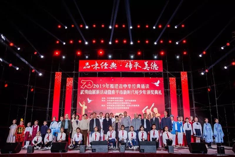 文明風(fēng)11月4日訊(通訊員 韓慧) 11月1日晚,“品味經(jīng)典 傳承美德”2019年福建省中華經(jīng)典誦讀武夷山展演暨南平市新時(shí)代好少年頒獎(jiǎng)典禮在武夷山市民廣場(chǎng)舉辦。200多名師生用吟、唱、頌等方式,為現(xiàn)場(chǎng)2000多名觀眾上演了一場(chǎng)極具詩情畫意的經(jīng)典誦讀盛宴。