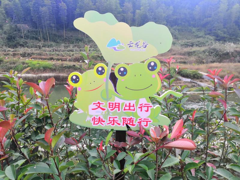 云龍谷景區管理處在景區各處醒目的位置都張貼著文明旅游相關標語,把景區的自身文明建設和對游客文明行為的影響引導結合起來。(德化云龍谷景區 圖/文)