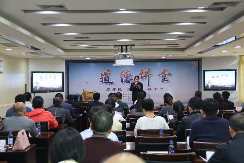 本期道德講堂圍繞“聆聽一首歌”“觀一段短片”“聽一堂講座”“談一段感悟”“誦一段經典”“送一份吉祥”六個環節展開。
