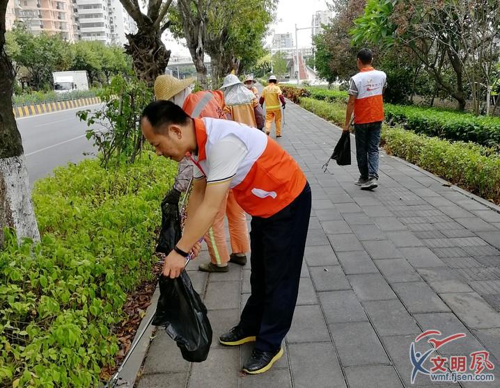 志愿者們潔凈家園。同安區委文明辦供圖