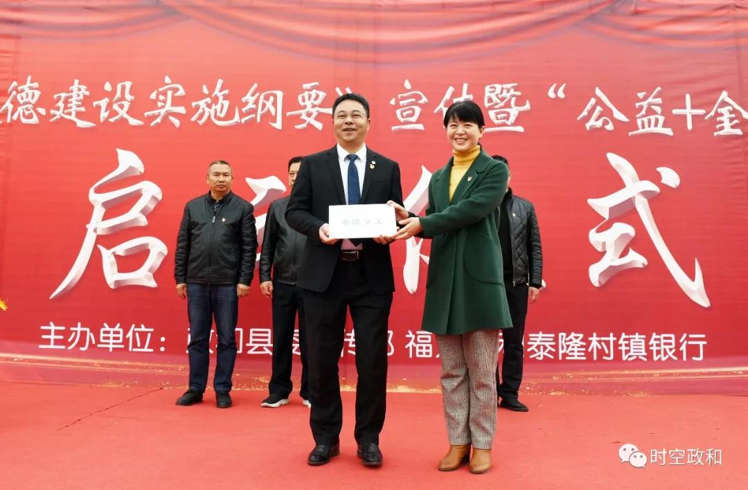 活動還舉行泰隆禮遇志愿貸首發儀式,成立泰隆義工隊,為全縣13支志愿者隊伍提供專屬貸款產品并授信5億元,主要用于志愿者創業、個人消費等,鼓勵帶動更多的志愿者投身政和志愿服務事業,讓志愿服務成為一種生活形式。現場還開展了《新時代公民道德建設實施綱要》、平安“三率”、掃黑除惡、禁毒、網絡安全宣傳活動。