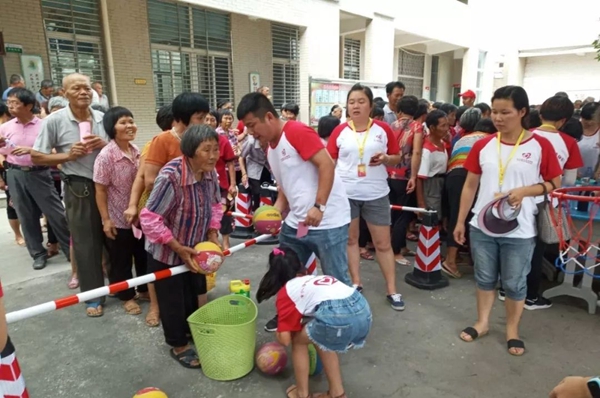 活動主要以老年人游園活動為主,分別設(shè)有為老人們免費義診、義剪(剪頭發(fā)、刮胡子、剪指甲)、理療、按摩、磨刀(磨各類家用刀具)、套圈、夾彈珠、投球、擲骰子、吹乒乓球、分發(fā)營養(yǎng)品(油、米、豆花、麥片、黑芝麻糊、米粉、面條片)、日用品(牙刷、牙膏、面巾紙、指甲剪套裝、洗潔精、香皂、杯子、保溫杯)等環(huán)節(jié),所開展的趣味活動都是為了鍛煉活動老人們的手、腳、眼睛,通過游園活動給他們帶來身心和身體上的鍛煉,而小禮品也都是為了給老人們生活帶來一定的補給與幫助。