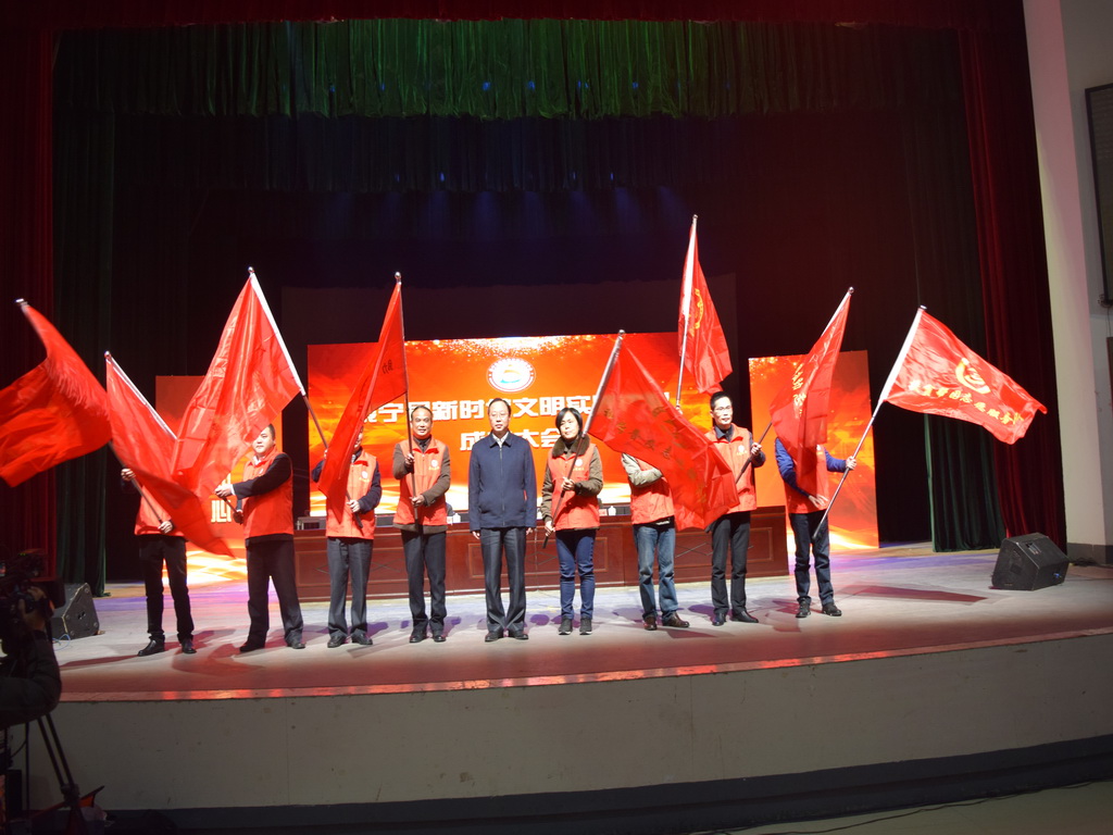 會上,縣文明委領導為9個鄉(鎮)頒發“新時代文明實踐所”牌匾,縣委書記、新時代文明實踐中心主任、縣志愿服務促進中心主任兼志愿服務總隊長呂國健為理論政策宣講、醫療健身、文化文藝、衛生環保、助學支教、科學科普、法律援助、扶貧幫困等8支常備志愿服務隊授旗。呂國健在講話中要求,建設新時代文明實踐中心,要堅持把思想旗幟舉得更高,聚焦習近平新時代中國特色社會主義思想這一思想旗幟,引導群眾以更深感情增強“四個意識”、堅定“四個自信”、做到“兩個維護”;要堅持把文明窗口打得更開,結合推進創建全國文明城市三年行動,把新時代文明實踐中心作為一項民生工程、民心工程來抓;要堅持把精神家園建得更好,圍繞培育時代新人、弘揚時代新風,把試點工作與文化服務中心、黨群活動中心等陣地建設結合起來,推動新時代新泰寧宣傳思想文化工作、精神文明建設工作再上新臺階。