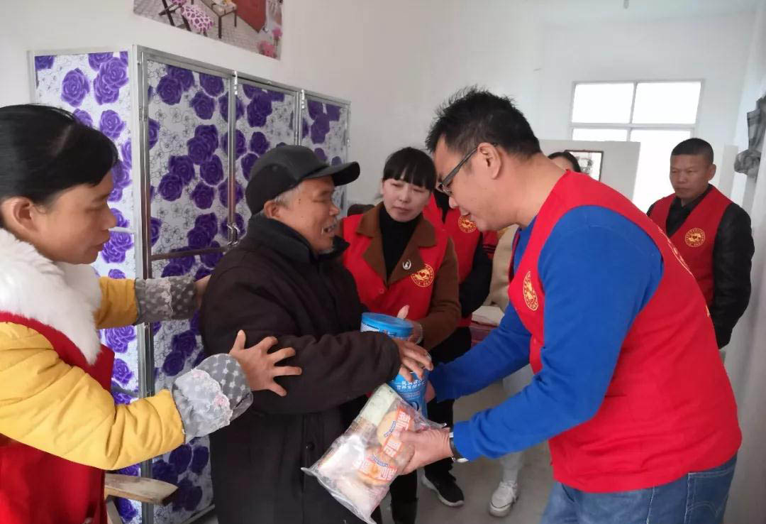 從敬老院出來,義工們還走訪了洋貝村、新崗村三戶貧困孤寡老人。三位老人,其中有兩位是眼睛失明的殘疾老人,所住的房子是國定精準扶貧補助款建的。義工們為老人送上了糕點和老年米乳。