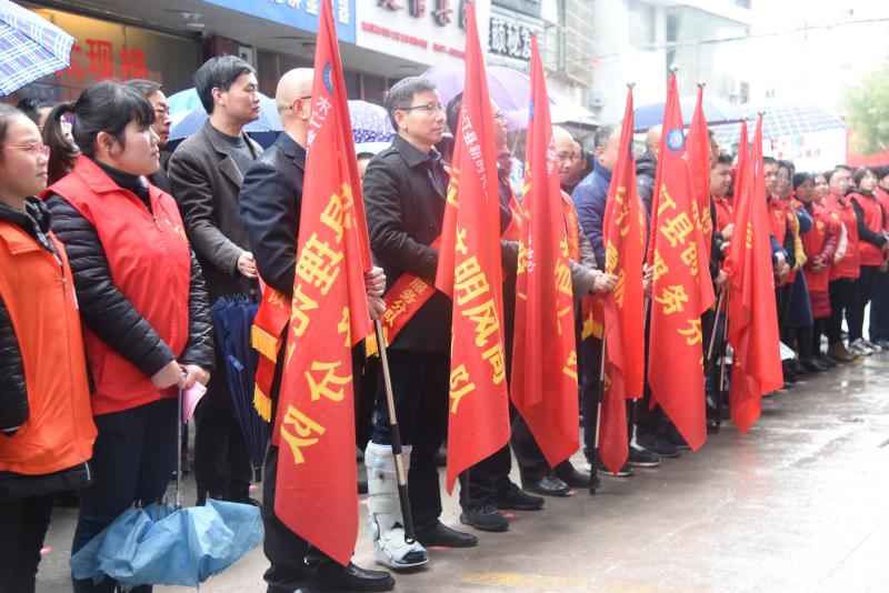 隨后,與會領(lǐng)導(dǎo)為理論宣講志愿服務(wù)、文明風(fēng)尚志愿服務(wù)、教育關(guān)愛志愿服務(wù)、文藝惠民志愿服務(wù)、創(chuàng)業(yè)科技志愿服務(wù)、體育健康志愿服務(wù)、平安志愿服務(wù)、生態(tài)文明志愿服務(wù)等八支志愿服務(wù)分隊授旗。