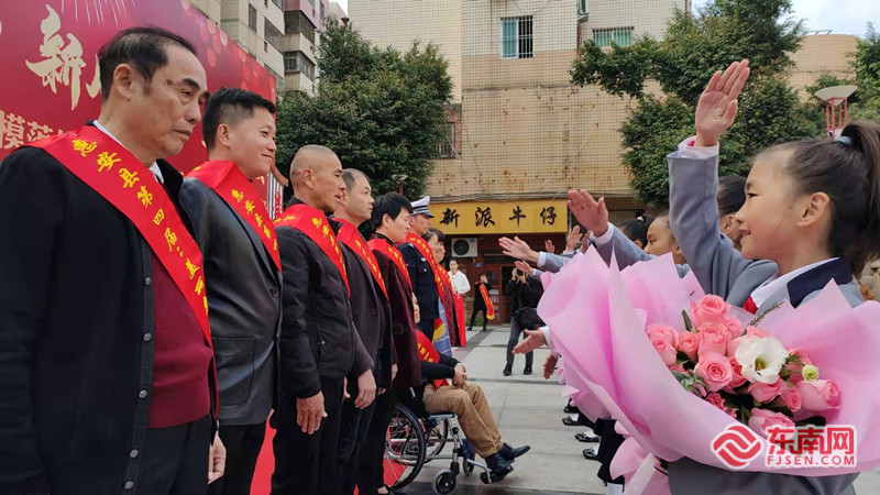 少先隊員向道德模范敬獻鮮花。東南網記者 林杰 攝