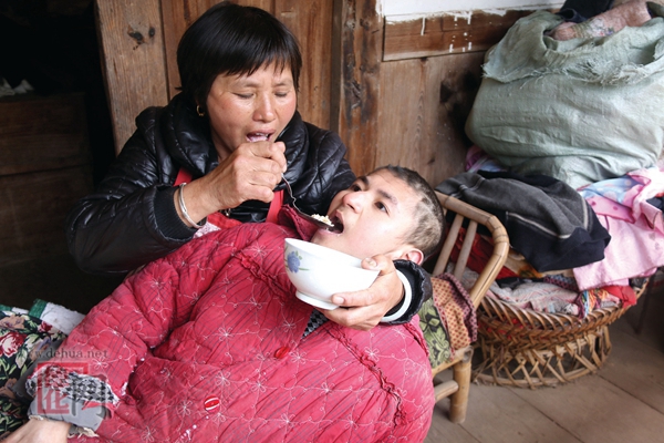 兒子沒有咀嚼能力,31年來,林愛華每一口飯都要嚼爛了再喂給兒子。為了照顧癱兒,林愛華不敢外出,常年守在德化深山的家中。作為斜山村坂面角落最年輕的留守人員,今年55歲的她,在照顧好小兒子和公婆的同時(shí),還對(duì)鄰居5位留守老人噓寒問暖,端飯送柴。
