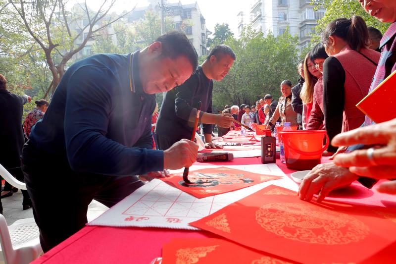 書法家揮毫潑墨書寫春聯 晉安文明辦供圖