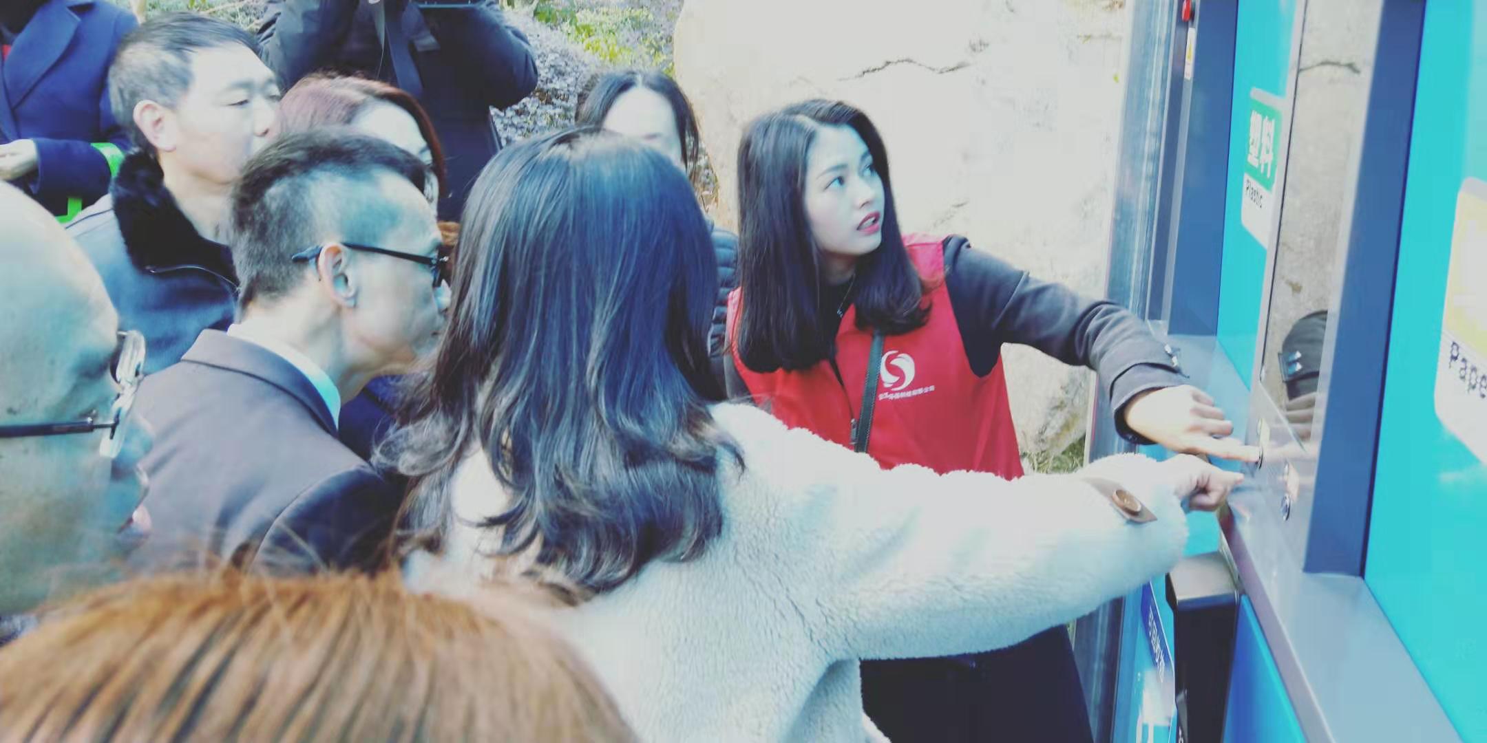 啟動(dòng)儀式結(jié)束后,工作人員及志愿者指導(dǎo)居民如何進(jìn)行正確的垃圾分類以及垃圾分類投放箱的使用方法。工作人員幫助沒有智能機(jī)或不會(huì)使用智能機(jī)的居民發(fā)放居民卡,通過具體的指導(dǎo),教會(huì)居民掌握智能分類機(jī)的使用方式,并且在居民投入使用后,可以產(chǎn)生兌換積分,用于兌換包括垃圾袋在內(nèi)的生活用品,很多居民對這種分類方式表示大力的支持。