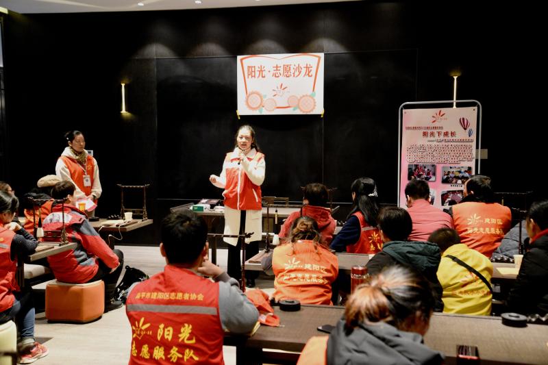 “陽光·志愿沙龍”由陽光志愿服務中心主辦,區志愿者協會、南平第二醫院、林業執法大隊、木檢中心、西門社區、北門社區、陽光志愿中心的50多名志愿者參加了活動。(南平市建陽區委文明辦供稿)