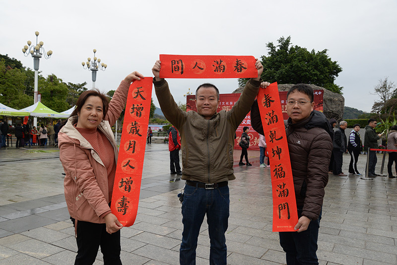 “年年順景則源廣 歲歲平安福壽多”“舊歲又添幾個喜 新年更上一層樓”……活動現場,書法家與書畫愛好者鋪好紅紙,揮毫潑墨,熱情滿懷地為大家寫出一副副透著喜慶和祝福的春聯。當天,書畫家們共送出了2000副對聯、500幅“福”字。群眾拿著充滿濃濃年味的春聯欣喜不已,一邊欣賞書法創作,一邊品評春聯寓意,每個人臉上都洋溢著笑容。(閩侯文明辦供稿)