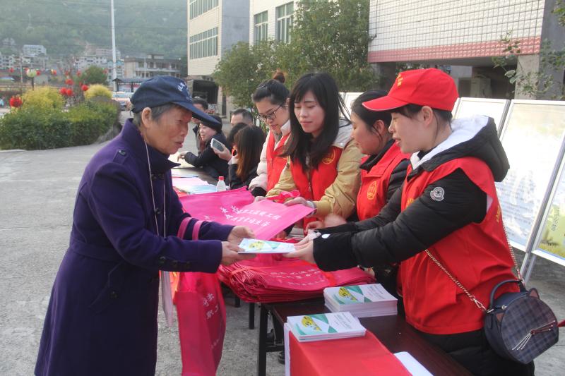 志愿者為群眾發放宣傳折冊、環保袋 閩清縣委文明辦供圖