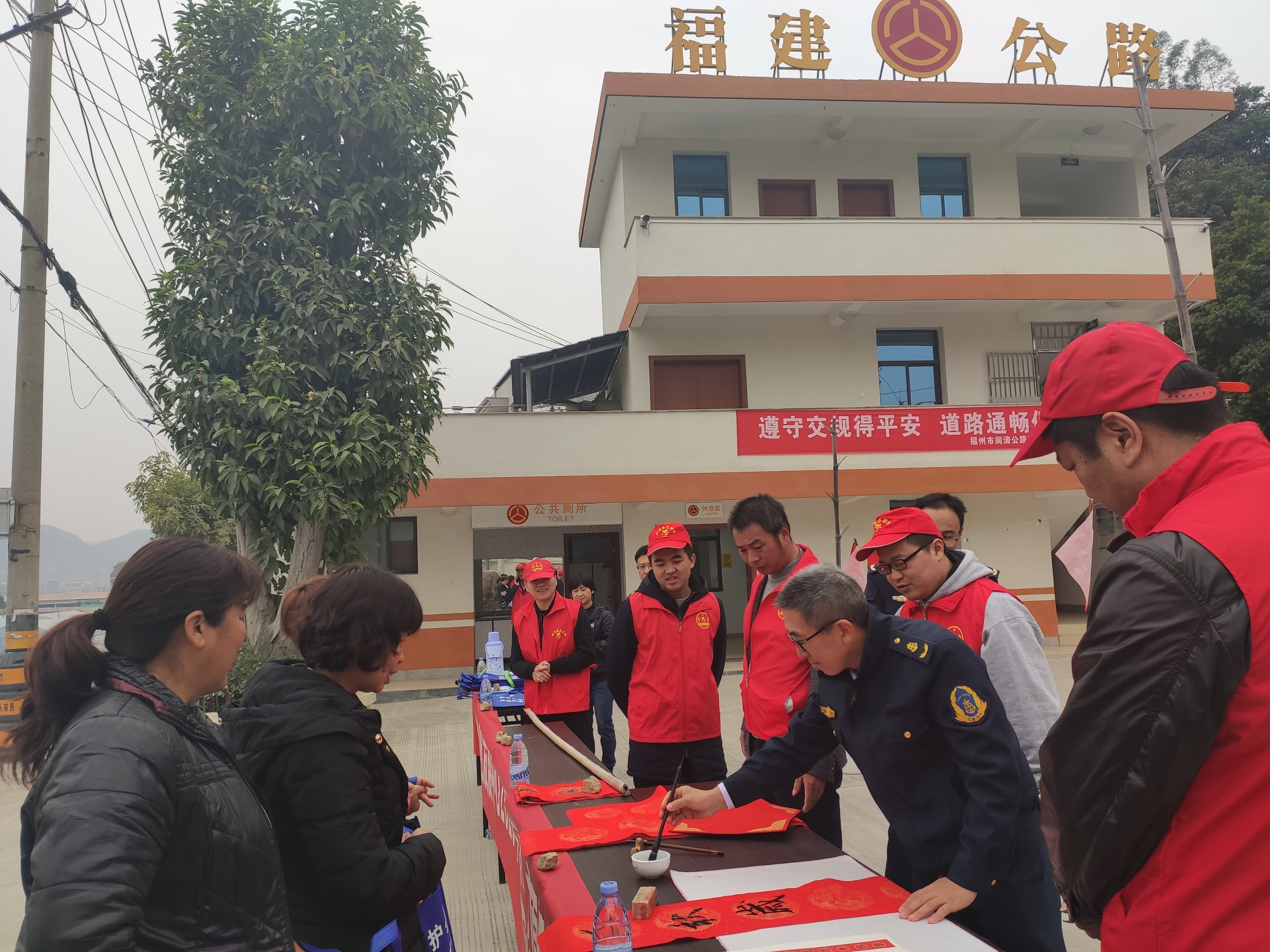 梅城服務區便民服務點公路志愿者為過往群眾現場寫春聯、送春聯 閩清縣委文明辦供圖