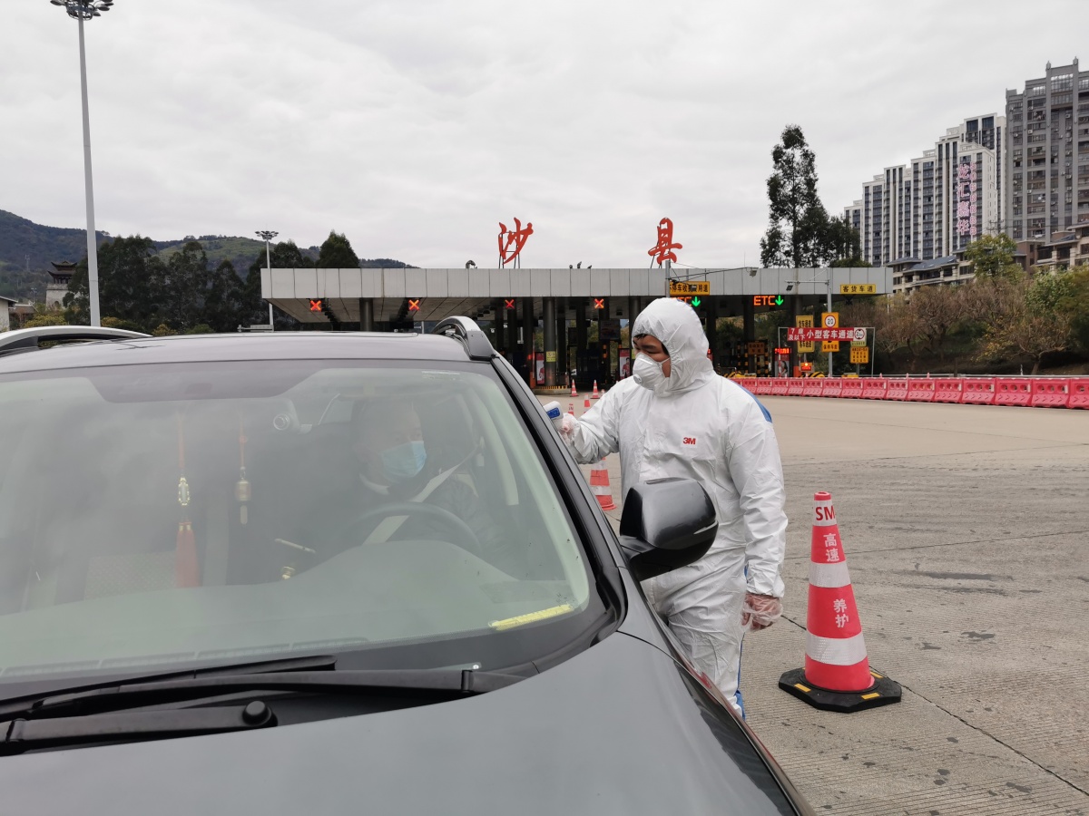 志愿者對來沙車輛上的人員進行體溫檢測 沙縣融媒體中心供圖