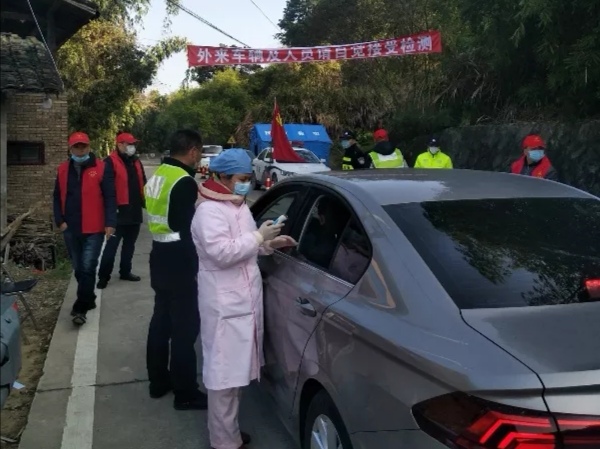 自然資源與規劃局志愿者聯合醫務工作人員對過往車輛進行體溫檢測 永泰縣文明辦供圖