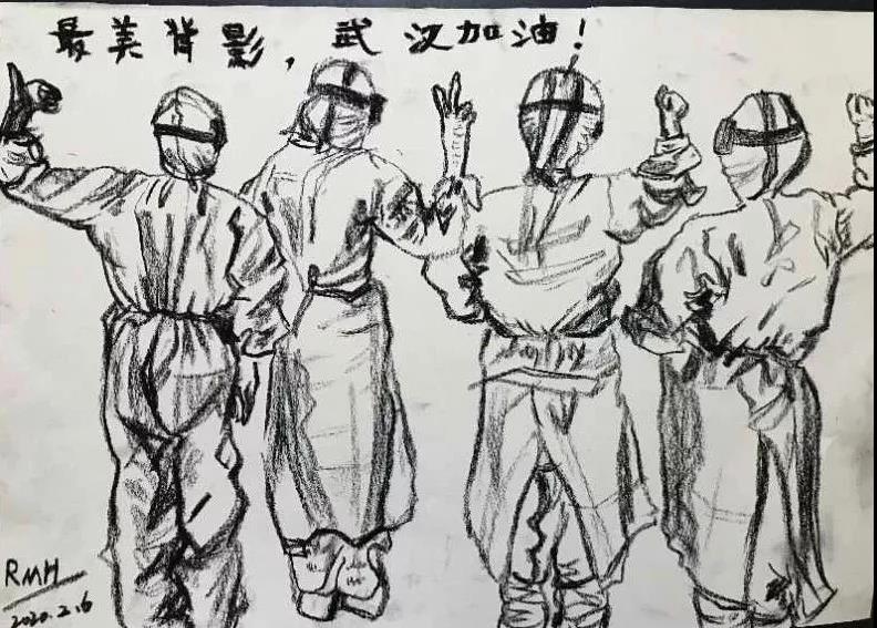 饒美華《最美背影 武漢加油》 上杭縣委文明辦供圖
