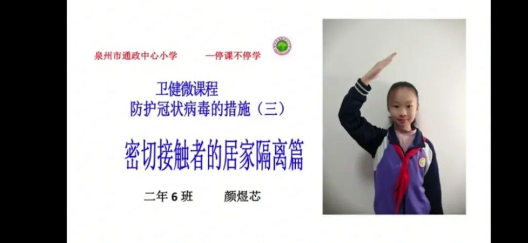早在2月10日(正月十七),泉州市通政中心小學開啟“停課不停學”模式時,便將“衛健微課程”列入居家學習指導課程表,由孩子與家長自愿制作視頻,課間休息時,發送到班級群里,宣講防疫小知識。