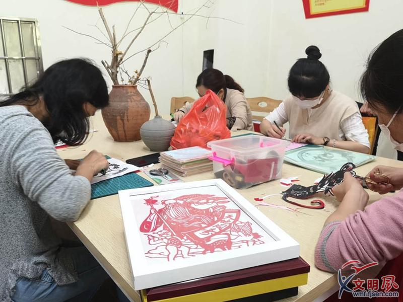 社區居民在鳳祥社區新時代文明實踐站里剪紙。東南網鄒玒攝
