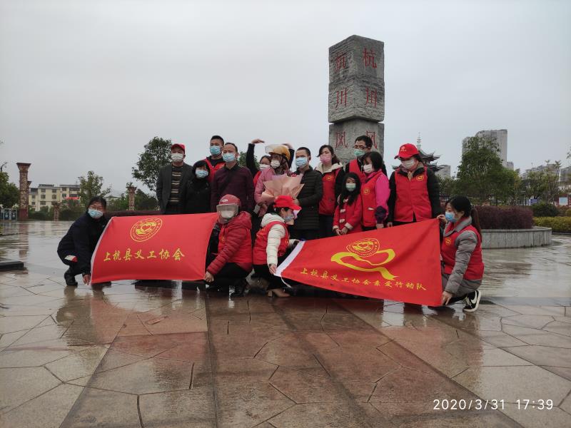 會見現(xiàn)場,義工協(xié)會義工們?yōu)樗麄兯蜕狭缩r花。為了表示感謝,阿新代表全家給上杭縣義工協(xié)會送上錦旗及疫情防控物資