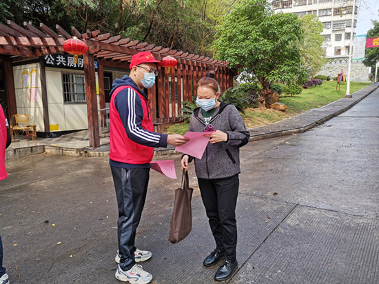 志愿者向群眾分發(fā)文明祭祀倡議書 汪露莎攝