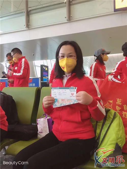 援鄂結束,盧珍珍坐上了回家的飛機。(受訪者供圖)