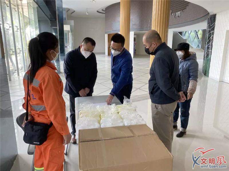邱鼎胤(左三)多方聯(lián)絡(luò)、努力籌措防疫物資。(海滄環(huán)衛(wèi)中心供圖)
