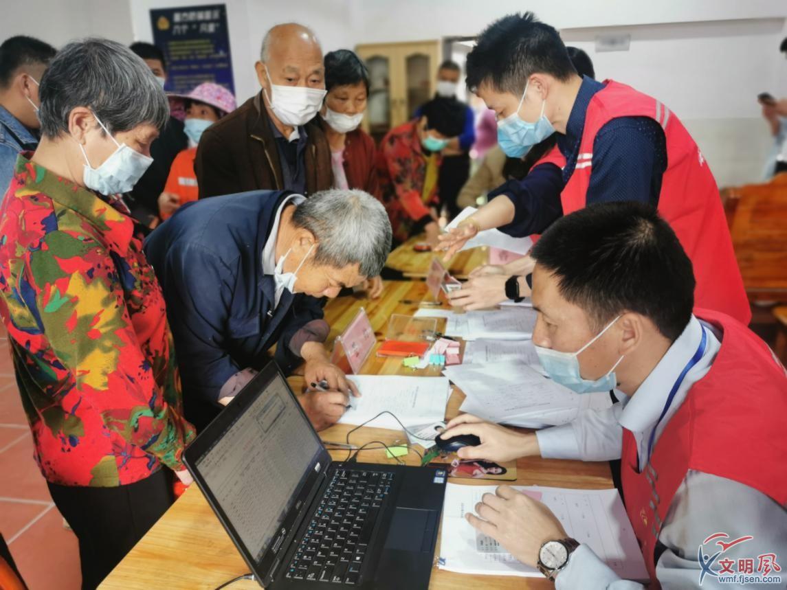 廈門市海滄區人社局學雷鋒志愿服務隊開展“上門服務、情暖海農”社保補繳面簽工作。(海滄區人社局供圖)