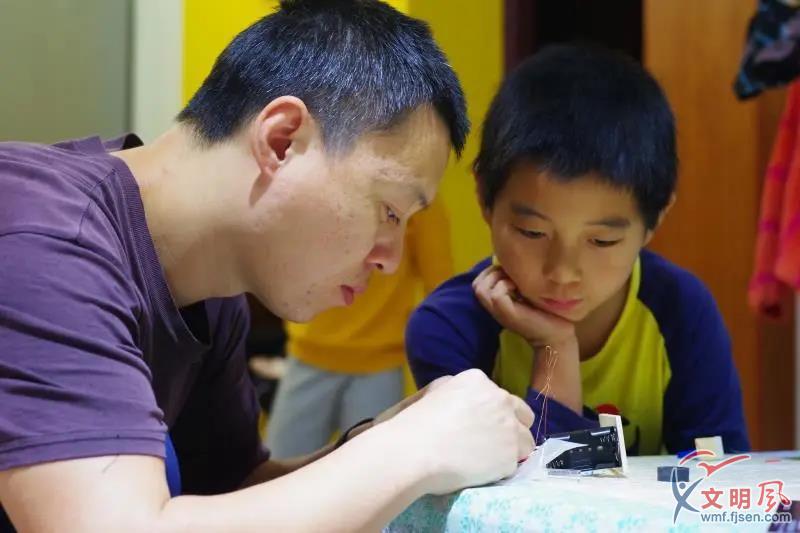 社工提前為親子們發(fā)放了材料包,還特地提前拍攝制作了電磁秋千指導(dǎo)制作過程的視頻供親子們反復(fù)觀看學(xué)習(xí)。在動手制作過程中,親子們一邊觀看視頻一邊動手制作。看起來容易,做起來難,雖然秋千的大致制作流程都能順利完成,但是有部分親子卻都遇到了秋千無法啟動的情況,經(jīng)過社工的鼓勵與指導(dǎo),他們也都能夠毫不氣餒積極應(yīng)對,直到問題解決。最終在社工的指導(dǎo)與幫助下,親子們共同合作完成了電磁秋千的制作,并且將制作過程上傳到線上社群。