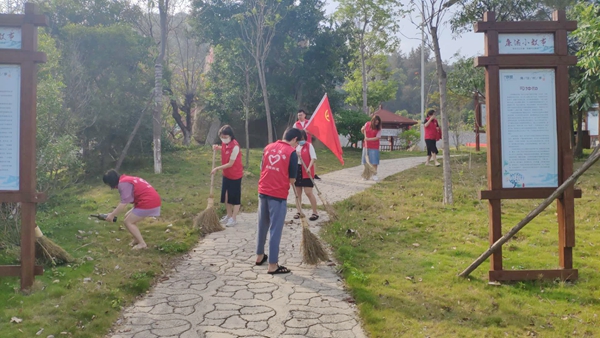 在紫林廣場(chǎng)的廉潔文化長(zhǎng)廊上,青年志愿者身著紅色馬甲,或兩人一組,或三五成群,他們手持掃帚,對(duì)長(zhǎng)廊兩旁的枯枝落葉、塑料袋、塑料瓶、廢紙等垃圾進(jìn)行認(rèn)真清理。天氣炎熱,一個(gè)多小時(shí)的清掃活動(dòng)下來(lái),大伙汗流浹背,但青年志愿者都沒(méi)有一絲怨言,現(xiàn)場(chǎng)洋溢著勞動(dòng)的快樂(lè)。他們的賣(mài)力行動(dòng),也收獲了不少居民、游客的點(diǎn)贊,更有群眾用自發(fā)的行動(dòng)響應(yīng)清潔活動(dòng),自覺(jué)地將自己攜帶來(lái)的果皮紙屑丟進(jìn)垃圾桶。