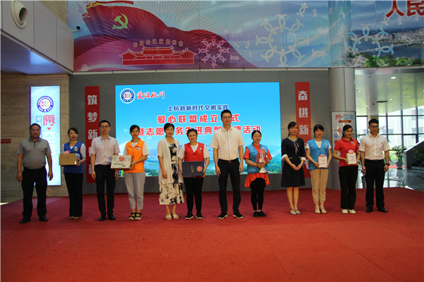 此次活動現場,為首批加入愛心聯盟代表頒發捐贈證書、為2019年最佳志愿服務組織、志愿服務最美志愿者進行授牌。同時,還宣讀了《上杭縣志愿者積分兌換禮遇物品細則》,愛心聯盟代表為志愿者代表發放禮遇物品。