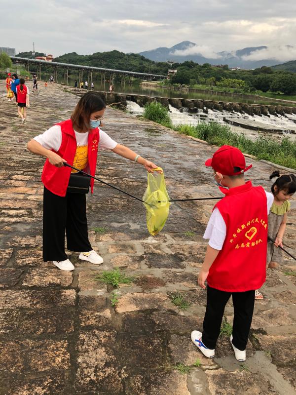 當天,志愿者們用自己的實際行動,感染和影響著游客。一些游客也熱情高漲,紛紛拿起垃圾鉗和塑料袋,自覺加入志愿服務的隊伍中。游客黃大姐帶著孩子加入志愿行列,她高興地說:“趁著周帶孩子來木蘭陂公園玩,剛好看到這群老師在為環保做貢獻,我讓孩子加入他們的隊伍,也是一種很好的體驗和教育。”