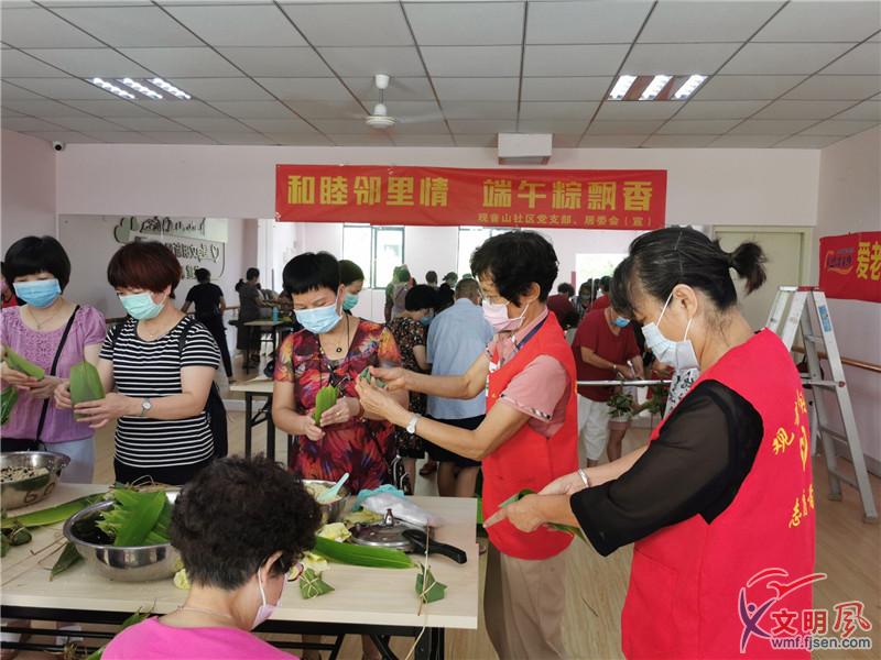 觀音山社區組織社區居民包粽子,慰問社區困難戶。張秋霞攝