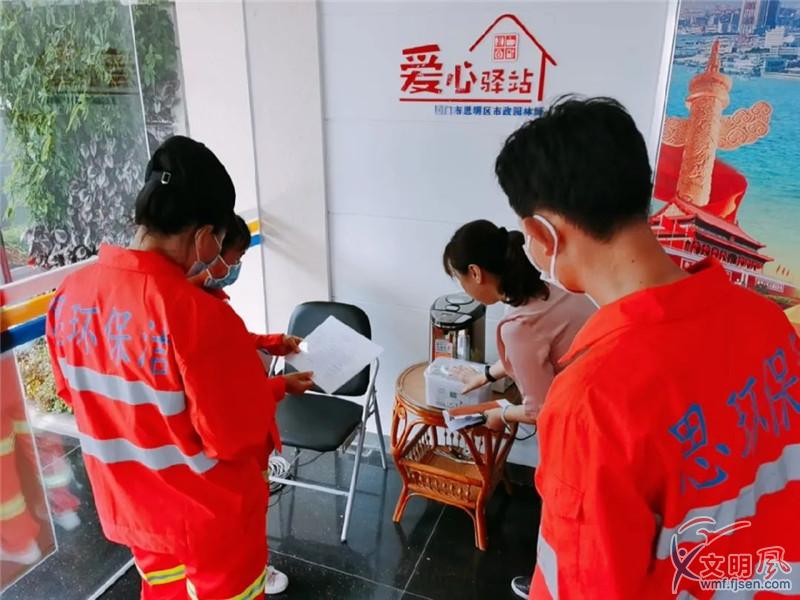 加快推進“愛心驛站”建設。思明區環衛部門積極鏈接和充分利用轄區愛心資源,形成愛心聯動,推進關愛環衛工人等特殊崗位工人的“愛心驛站”建設,改善其工作環境,通過設置桌椅、凈水器、空調、應急藥箱等物品,讓更多環衛工人可就近休息,在酷暑難耐的高溫天有一個歇腳清涼的好去處。同時,在轄內的主次干道上,也相繼出現“流動茶水車”,為作業中的環衛工人送上涼茶,做好防暑降溫。(廈門市思明區委文明辦供稿)