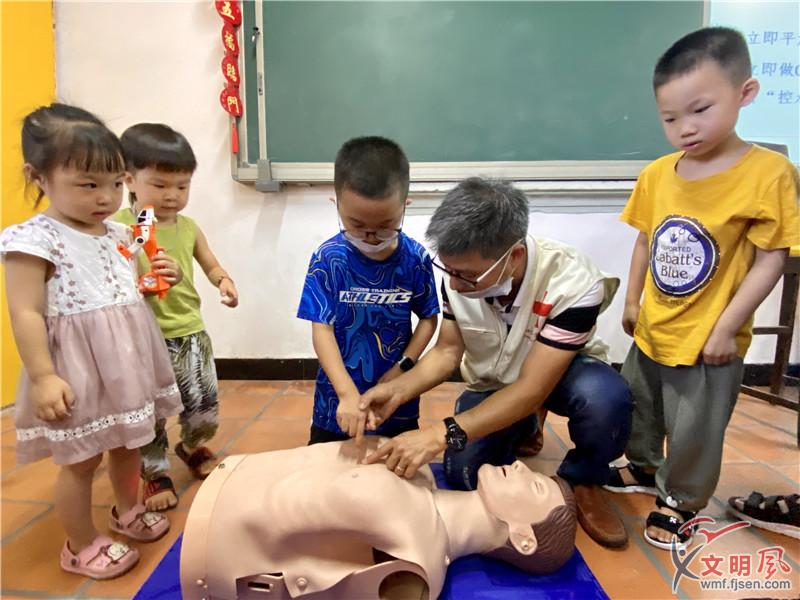 孩子們參與到人工呼吸急救的演示當中來。蔡惠紅攝