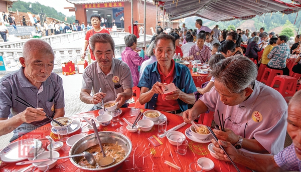 中午時分,老人們圍坐在一起,吃著美食、話著家常,臉上洋溢著幸福的笑容,氣氛十分熱鬧融洽。而對于那些腿腳不便,不能到場參與活動的老人,村兩委還組織人員送餐上門,讓愛心走進家里,溫暖老人們的心。