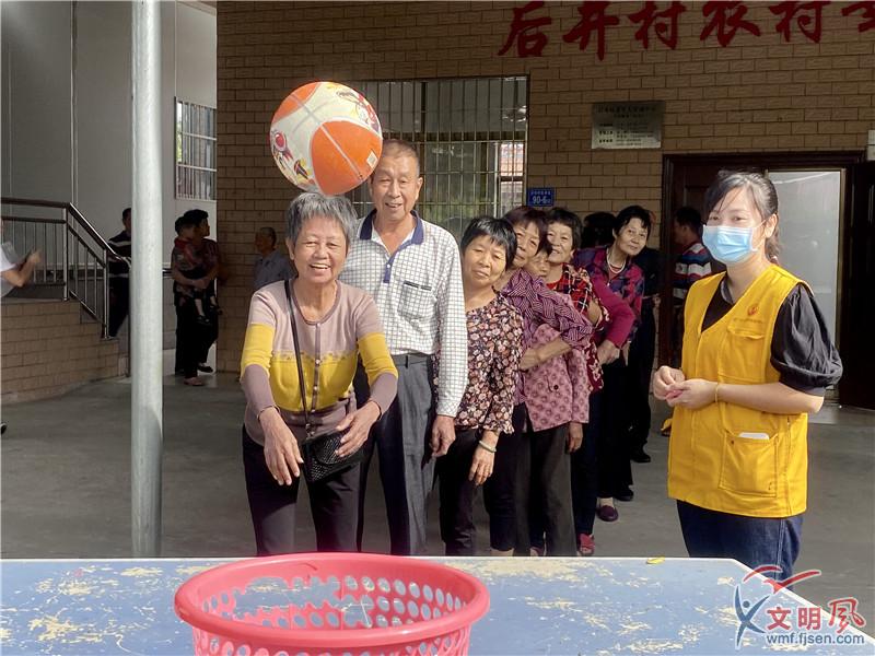 文明風10月23日訊(本網記者 盧超穎 通訊員 蔡惠紅)為迎接一年一度的重陽節,讓老年朋友們過上一個歡樂祥和、內容豐富的重陽佳節。10月23日上午,廈門市海滄區后井村委會、計生協會、民政部門等聯合在后井村農村幸福院廣場開展了“秋意濃、重陽聚”為主題的趣味游園活動。