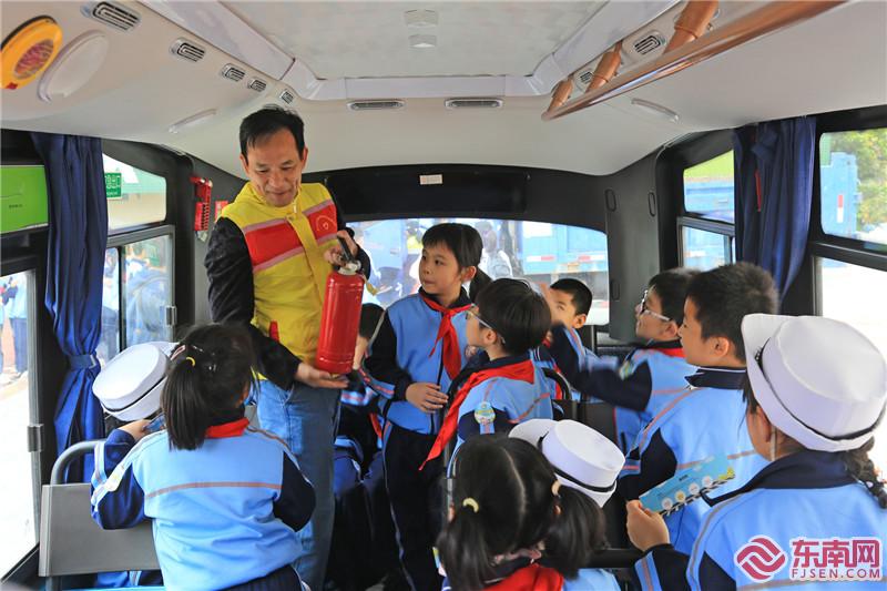 了解公交車上安全錘、滅火器位置(思明交警大隊供圖)