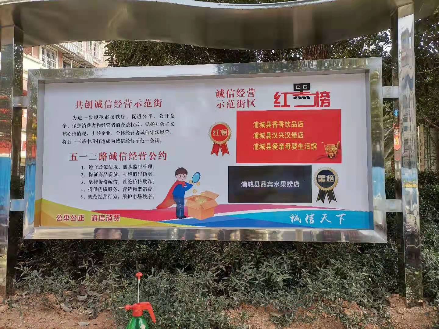 誠(chéng)信經(jīng)營(yíng)“紅黑榜”(浦城縣市場(chǎng)監(jiān)管局供圖)
