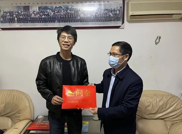 他代表中宣部、中央文明辦向張涵、張輝送上慰問幫扶金,祝福兄弟倆新年快樂、身體健康、家庭幸福、日子越過越紅火。