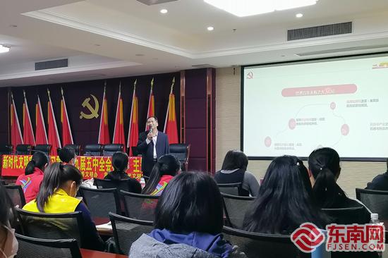 集美大學(xué)教授肖仕平為文明實踐站管理員宣講全會精神(吳林瑞 攝)