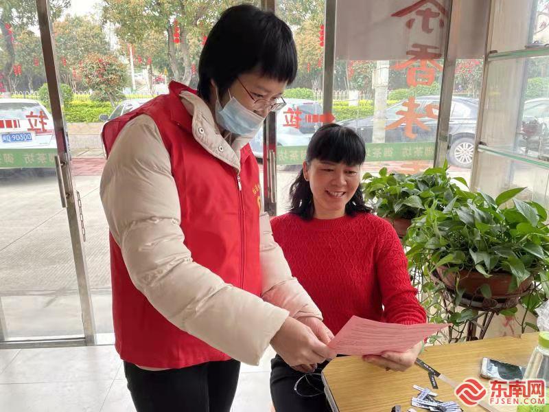志愿者下社區宣導《中華人民共和國婦女權益保障法》(前進村新時代文明實踐站供圖)