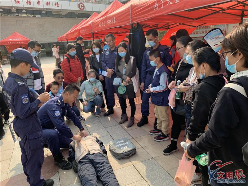 廈門曙光救援隊為居民群眾模擬真人救治方法進行講解。黃麗卿攝