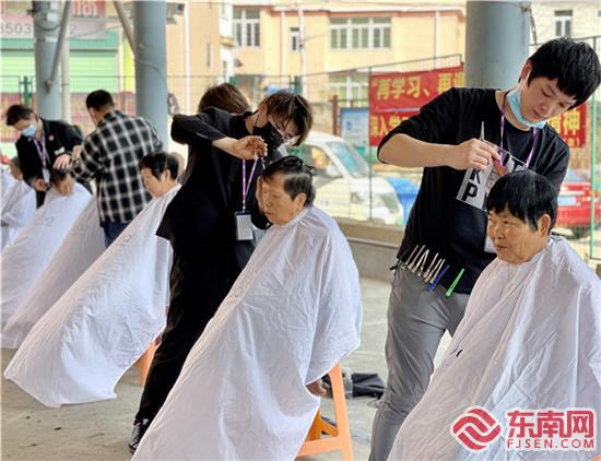 便民志愿服務(wù)活動現(xiàn)場,提供義剪服務(wù)。(侖上村新時代文明實踐站供圖)