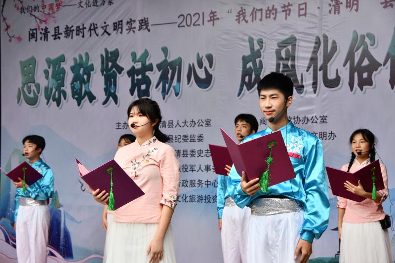 閩清二中學(xué)生帶來(lái)了《少年中國(guó)說(shuō)》朗誦,郎朗讀書(shū)聲中彰顯著新時(shí)代好少年的蓬勃朝氣;第三屆閩清縣道德模范詹友福把黨來(lái)比母親,獻(xiàn)唱《最美的歌兒獻(xiàn)給媽媽》;舞蹈《祝福祖國(guó)》將最美好的祝愿獻(xiàn)給最親愛(ài)的祖國(guó)。閩清革命史展板區(qū),吸引了許多人紛紛駐足觀看。