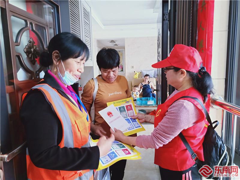 志愿者入戶宣傳垃圾分類知識(陳曉芬 攝)