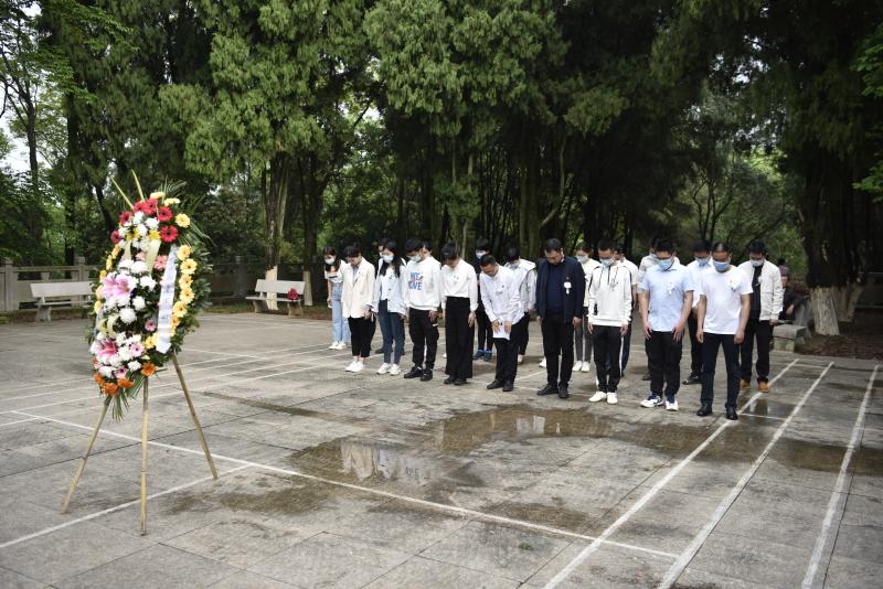 在莊嚴肅穆的氛圍中,全體人員排著整齊的隊伍,站在烈士紀念碑前向革命先烈表達崇高敬意和無限哀思。