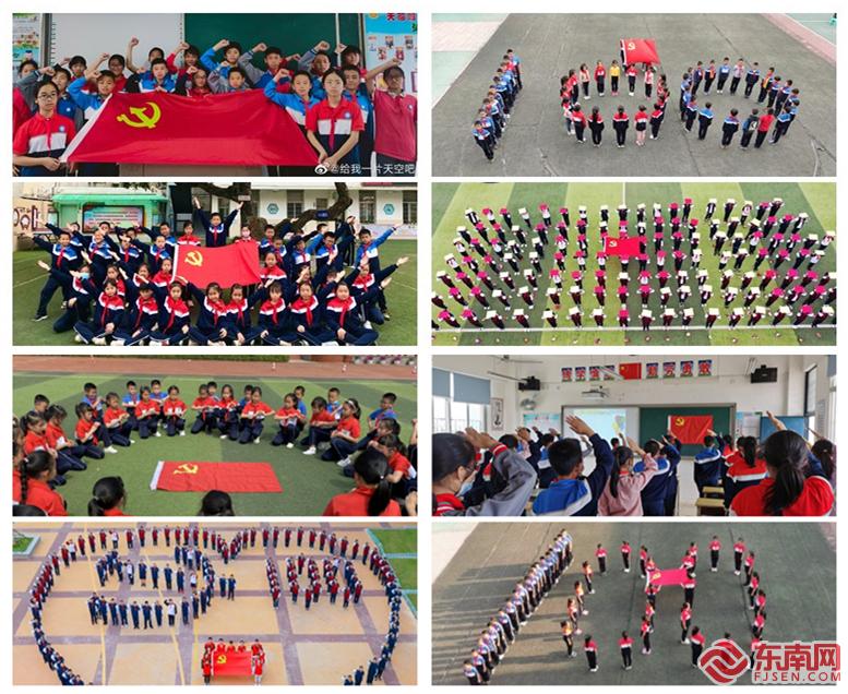 廈門市各小學紛紛掀起“我向黨旗敬個禮”“我與黨徽合個影”熱潮。圖片素材來源“紅領巾心向黨”微話題